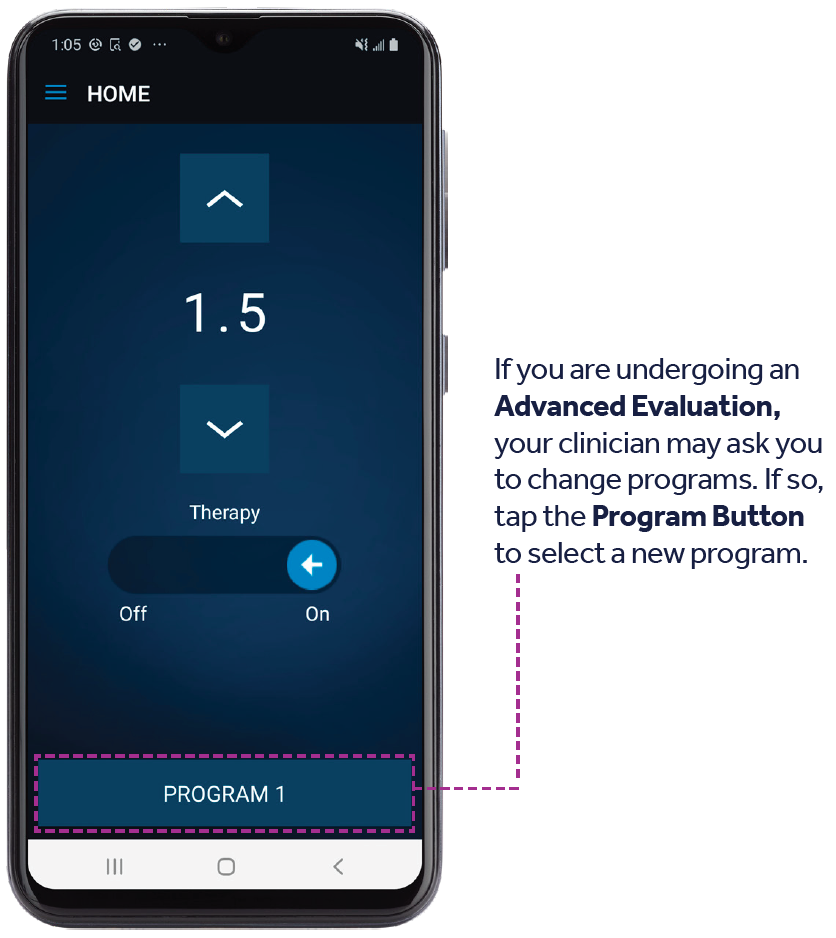 Note: The programmer is not set up to make phone calls or access the Internet. It’s designed only to manage your evaluation. The programmer functions below will not alter your therapy.