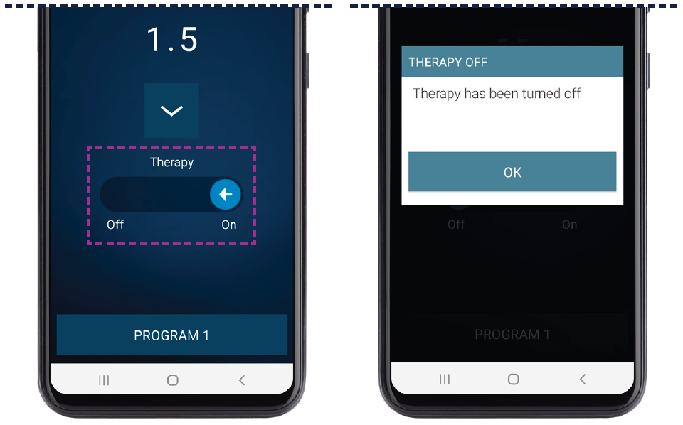 Tap OK to acknowledge that you have turned your therapy off.